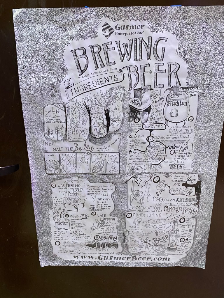 This is a poster hanging up in the brew room that shows how intense the brewing process is. There were so many levers and hoses that Joey would hook up, unhook and then hook up to something else. At times I had to follow where the hose was going, but Joey did it with ease. He has done it a time or two or 500+!