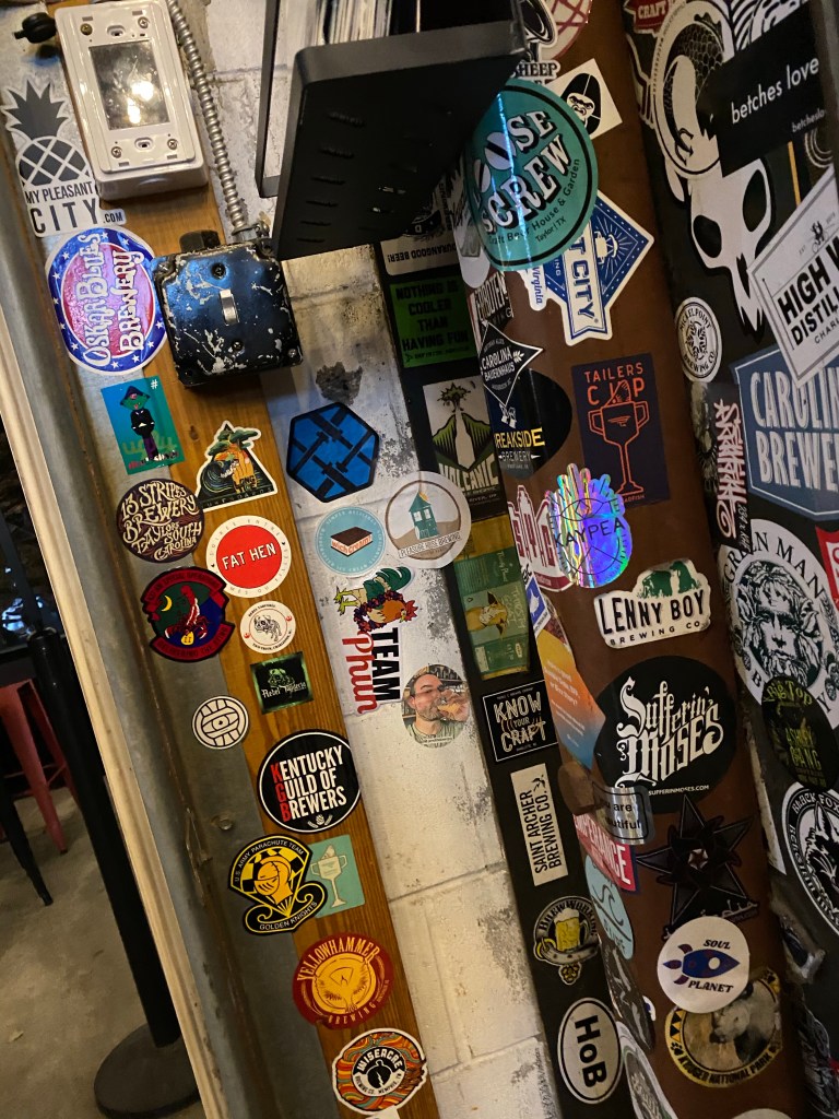 I ordered Achtung! Drive By Fruiting W/Pineapple, Passion Fruit and Guava (Berliner Weisse). This is a salty sour, which is how I like my sours. Guava seemed to be the main event, but the passion fruit came through as well. I didn’t get much pineapple. I also put my sticker on their wall!