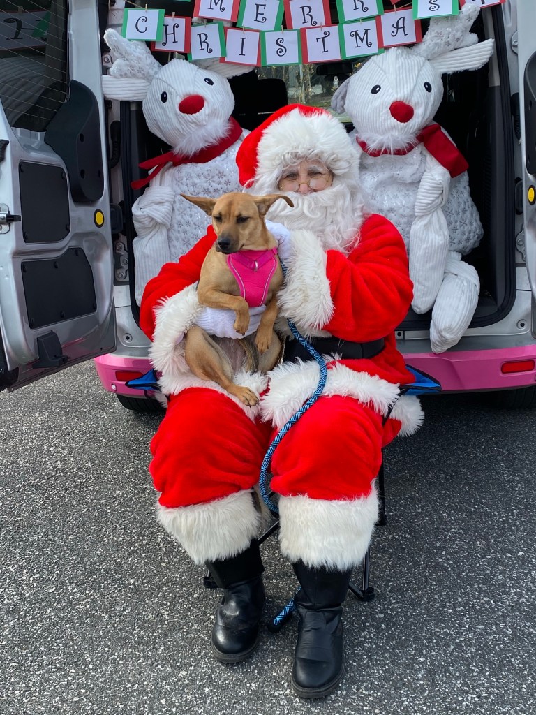 All Pets Considered pet store was there allowing us to take pictures with Santa and handing out goodies! Barley got some treats and a pass to come back to Doggos and I got a Doggos koozie!!